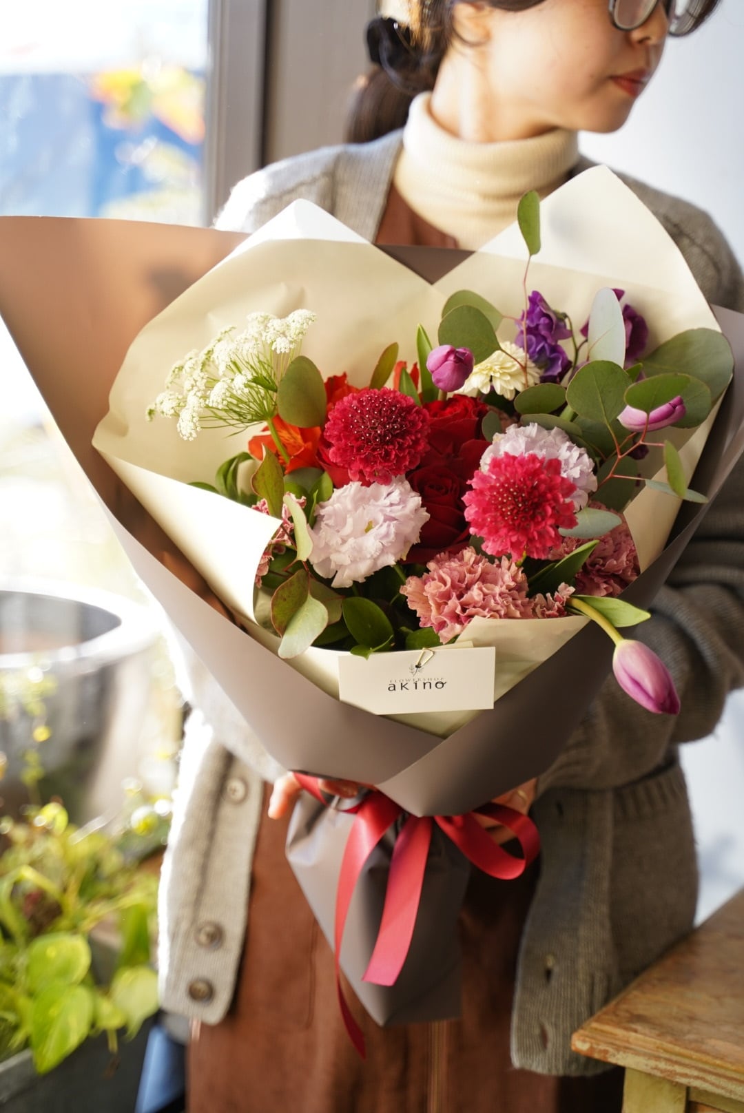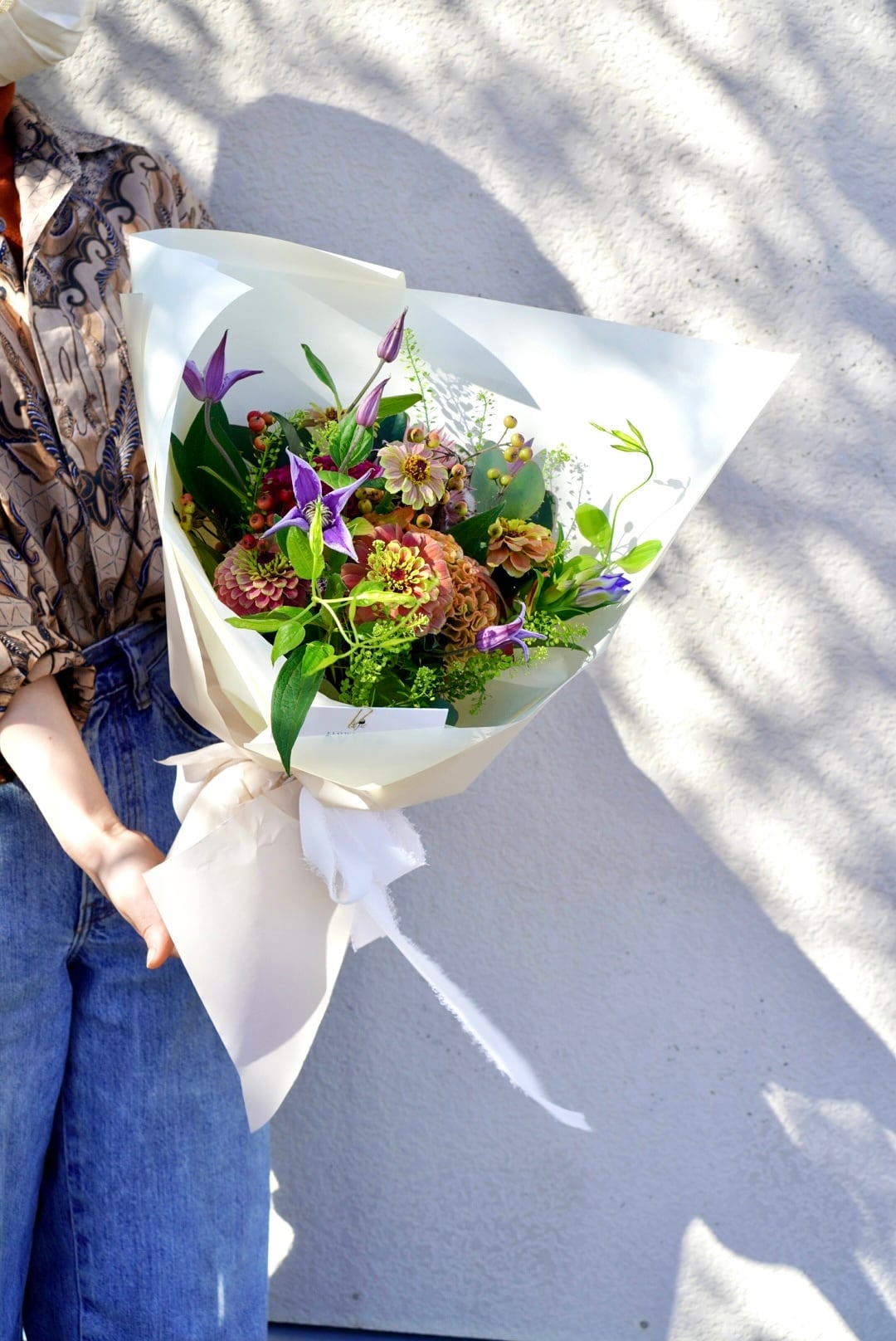 季節の花を束ねたブーケは誕生日はもちろん、お祝いや記念日・ご自宅づかいなど、様々なシーンでお使いいただけます。
