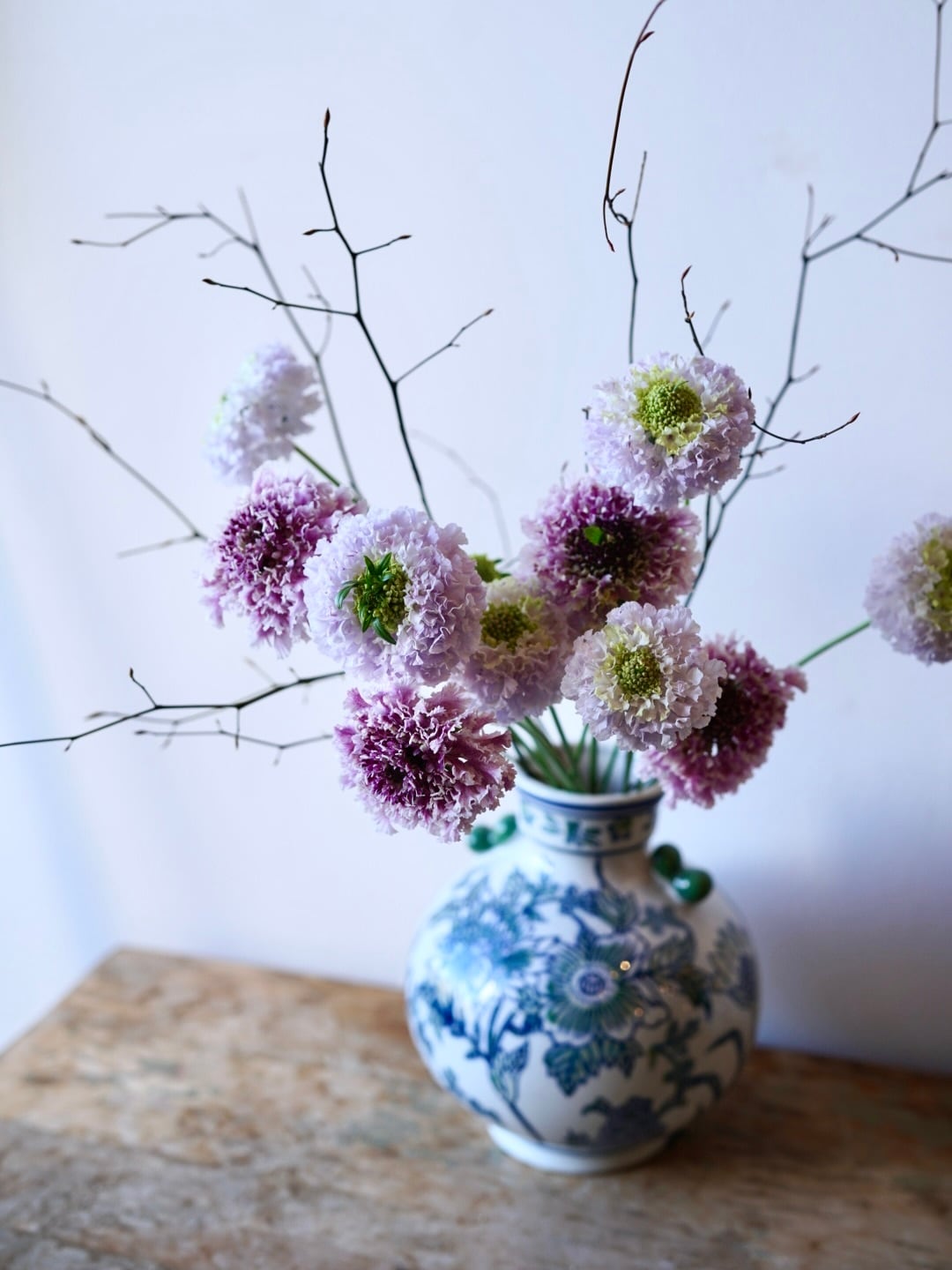 芍薬や椿のような可憐な草花が描かれたこの花瓶は、